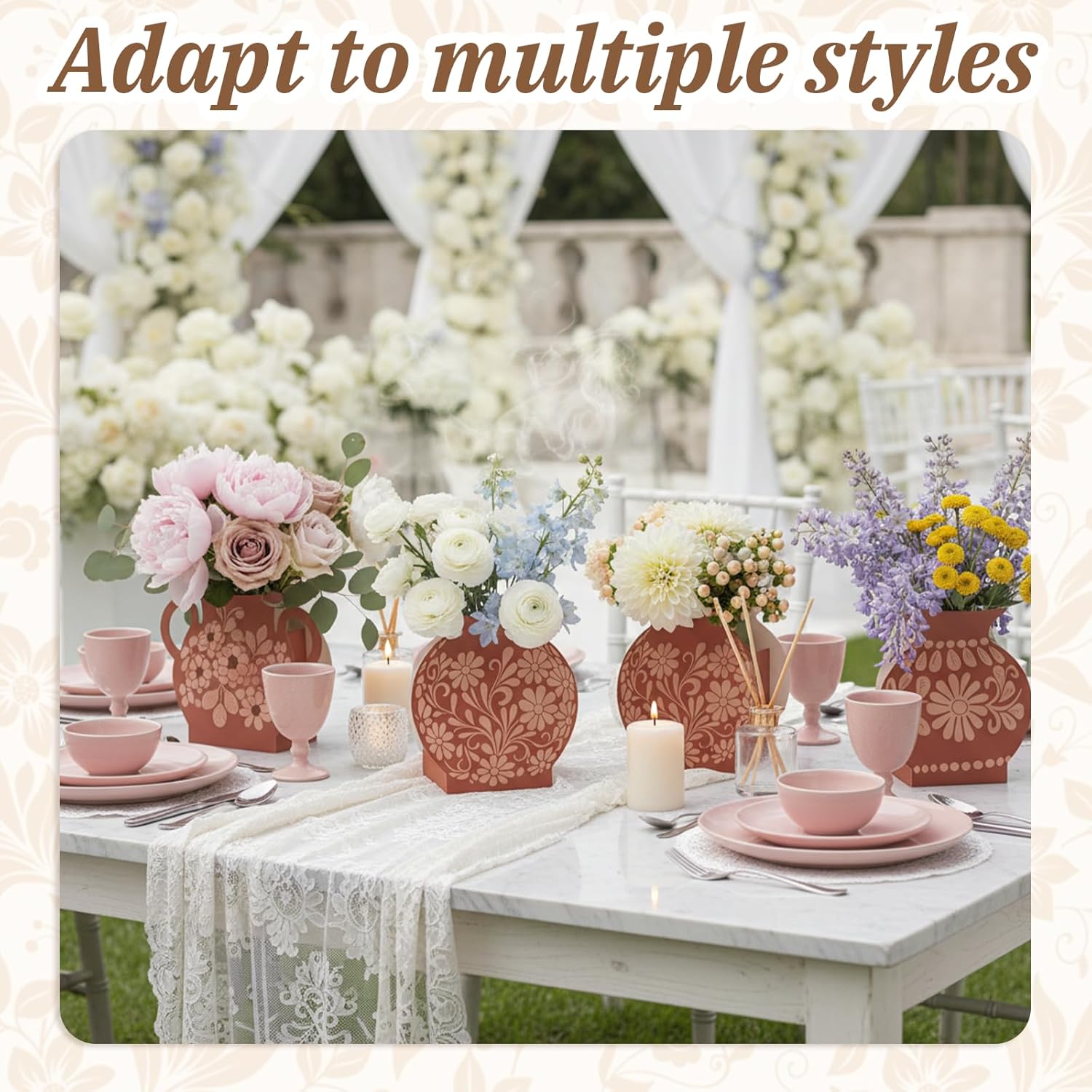 Dear customer, we are very glad that you chose our products. If you have any questions during shopping, please feel free to consult us. We hope you have a pleasant shopping experience.SpecificationProduct Name: Oqqlin 12 Pcs Mexican Paper Flower Vase, Brown Mexican Party Decoration 4 Styles Mexicanos Terracotta Paper Cinco De Mayo Tables Decor Material: CardboardColor: BrownProduct Dimensions:Overall Dimensions: 6.2 x 4.1 x 6.5 in / 15.7 x 10.5 x 16.4 cmPackaging: BaggedPackaging Dimensions: 28 x 29 x 4 cmPackaging Weight: 425 gPackaging Contents: 12 x Mexican Paper Vase