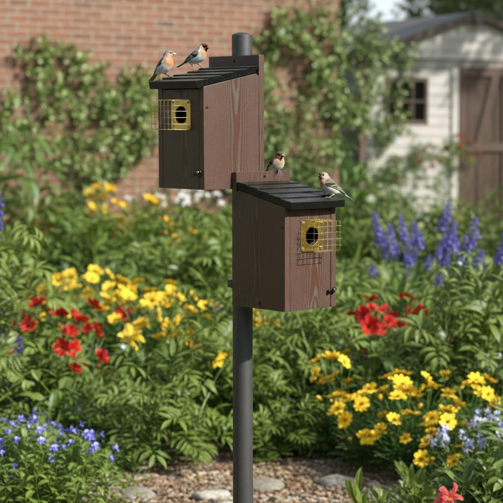 Eastern Bluebird Bird Houses for Outdoor Delight with Copper Guard Our cedar bird houses, designed specifically for the great outdoors, are a haven for various avian species. Crafted from carbonized cedar wood, they possess remarkable durability, ensuring a longtime lasting presence in your garden or yard. The unique carbonization process not only fortifies the wood against the elements but also imparts a rustic charm. These houses are a value-packed 2Pk, ideal for attracting Bluebirds, Finches, Swallows, Wrens, and Chickadees. The carefully sized entrance, protected by a copper plate, provides a secure and inviting entryway for our feathered friends. Easy cleaning is another standout feature. With a thoughtfully designed structure, maintaining the cleanliness of the bird house is a breeze, promoting a healthy and hygienic environment for the birds. Whether you're an avid bird watcher or simply wish to enhance the natural beauty of your outdoor space, these cedar bird houses are the perfect choice.