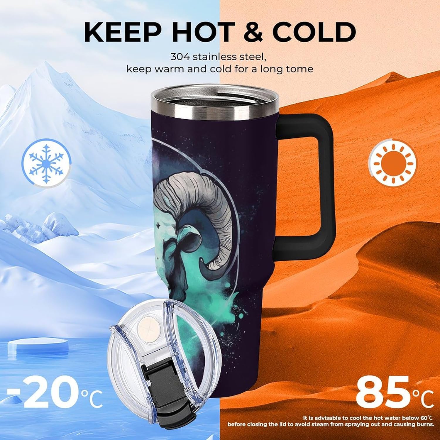 Why Our Car Cup Stands Out:Our High-Capacity Car Cup is designed for those who value convenience, durability, and style. Whether you're a coffee lover, a tea drinker, or someone who needs plenty of water throughout the day, this cup is your perfect companion on the road. Its user-friendly design and high-quality construction ensure that you can enjoy your favorite drinks without interruption, no matter where you areFeatures:Cup Material: 304 Stainless steel materialAttachment: Sealed double drinking cap*1,stainless steel straw*1, Silicone straw mouth*1, straw brush*1Large capacityCar Cup DesignWide mouthedWith handleUnusual lid:The swivel lid of this stainless steel handle cup gives you the option of straw opening, wide mouth and full lid top to prevent overflow. Choose the way you drink water according to your drinking habits.Suitable for most vehicles:The cup has the design of a car cup, which is suitable for most car cup holders. You can also drink your favorite juice, coffee, etc. anytime while driving. The design with a handle will not affect the driving of the vehicle, making it very suitable for use during the journey.This tumbler is a whimsical way to enjoy your favorite drinks while on the move. it will become your go-to travel companion.