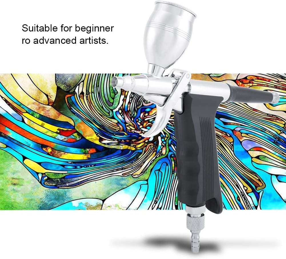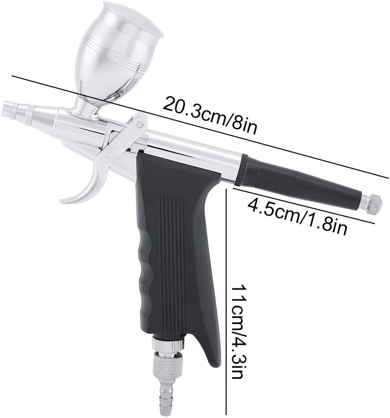 Features: 1. Dual action controls, easy to handle and easy to open magazine for fast loading by one hand. 2. locks system, which allows users to determine the quantity of air and fluid released. 3. Ideal for artwork, nail art beauty, body art, painting, cake decorating, etc. 4. Suitable for beginner ro advanced artists. 5. Airbrush is made of copper, to use. Specification: Condition: Brand New Airbrush: copper Fluid Bottle: plastics Color: As Pictures Shown Switching mode: push-pull double-action switch Nozzle diameter: 0.2mm, 0.3mm, 0.5mm Spray distance: 50-100mm Spray width: 5-60mm Size: approx. 20.3*11*4.5cm/8*4.3*1.8in Weight: Approx.303g/10.7oz Package list: 1 x Airbrush 1 x Nozzle Wrench 3 x Fluid Cup 1 x Air Inlet 1 x Adapter Substitute 1 x 0.2mm nozzle 1 x 0.5mm nozzle 1 x 0.5mm nozzle 1 x 0.2mm jet needle 1 x 0.5mm jet needle Note: 1. Please allow 0~1 inch error due to manual measurement. Thanks for your understanding. 2. Monitors are not calibrated same, item color displayed in photos may be showing slightly different from the real object. Please take the real one as standard.