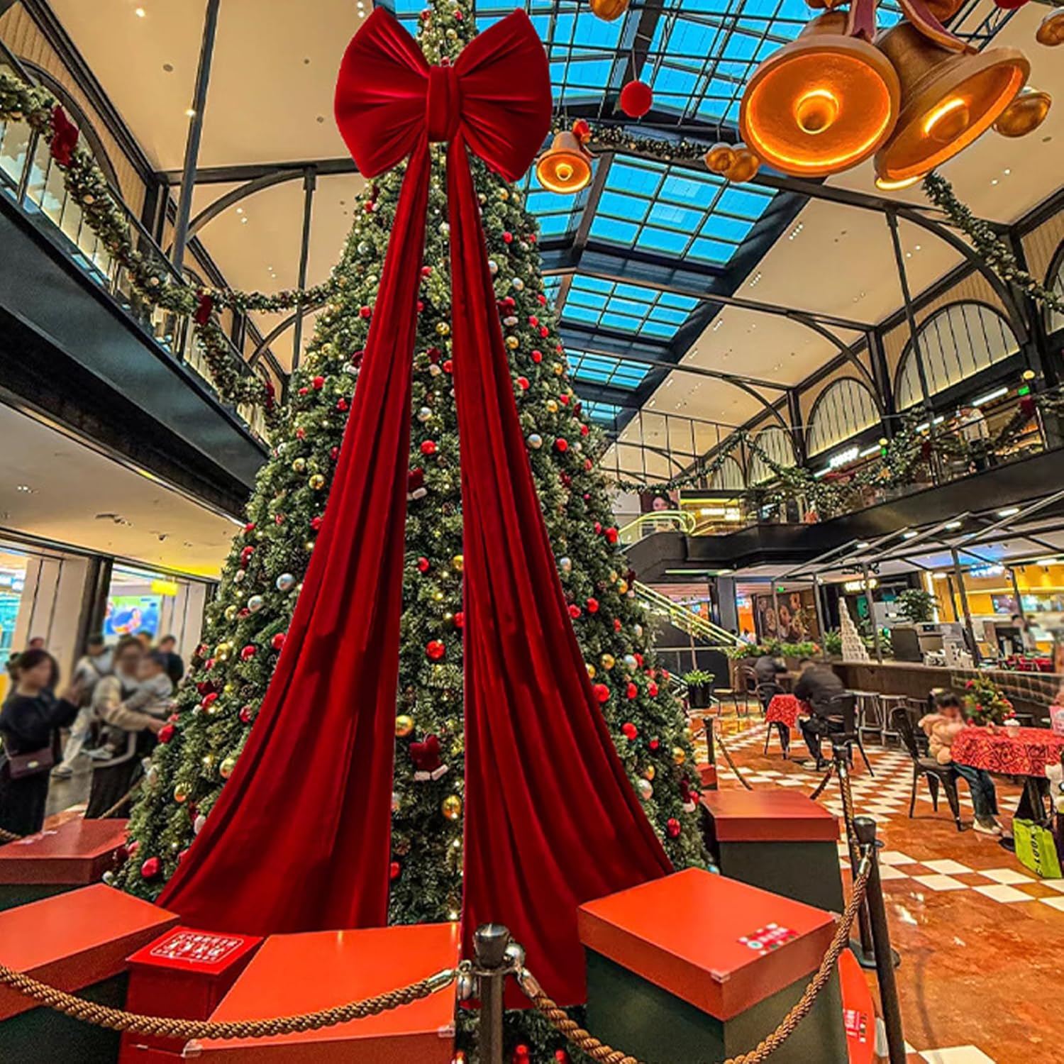 Description: Our extra large red velvet Christmas Tree Bow Topper delivers a timeless centerpiece for holiday decorating, blending plush Velvet Bows for Christmas Tree styling with easy wired shaping for a ideal finish every year. Designed for versatility, this Christmas Tree Topper serves as a statement tree topper, dramatic wreath bow, mantel accents, or oversized gifts bow-bringing instant festive warmth and photo-ready impacts to living rooms, entryways, and party spaces. The rich red hue and soft velvet texture complement lights and ornaments while sturdy construction and reinforced stitching ensure repeatable use season after season. Simple to attach with integrated ties and flexible wired edges, it lets you create professional-looking arrangements in minutes, perfect for families, hosts, and decorators who want classic, cozy holiday charm without extra effort. Features:. -Color: Claret. -Material: Velvet. -Size: about 110 cm/43.3 inch. Note:Manual measurement, please allow slight errors on size.The colors may exist slight difference due to different screens. Package Including 1 x Christmas Tree Topper Bow