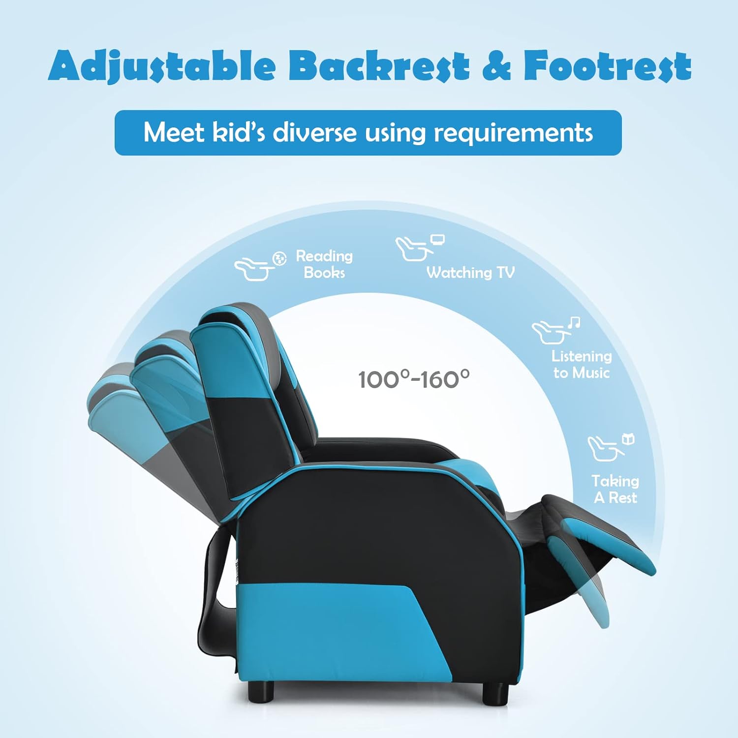 | Additional Features | Adjustable Footrest & Headrest, Thick Sponge-padded Wide Seat, Easy to Assemble |