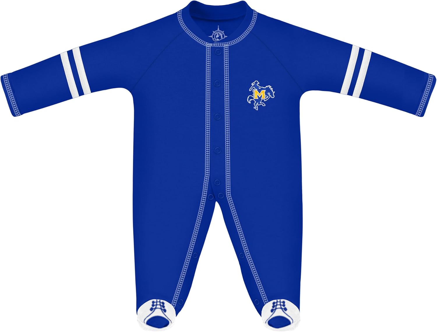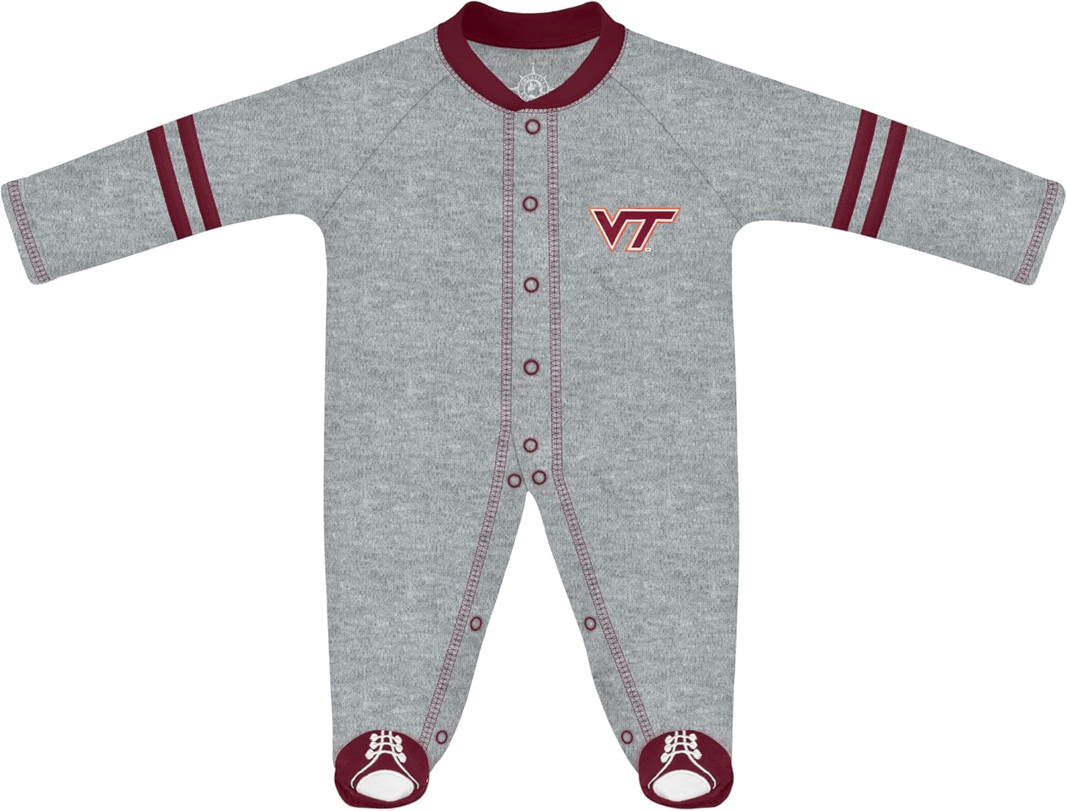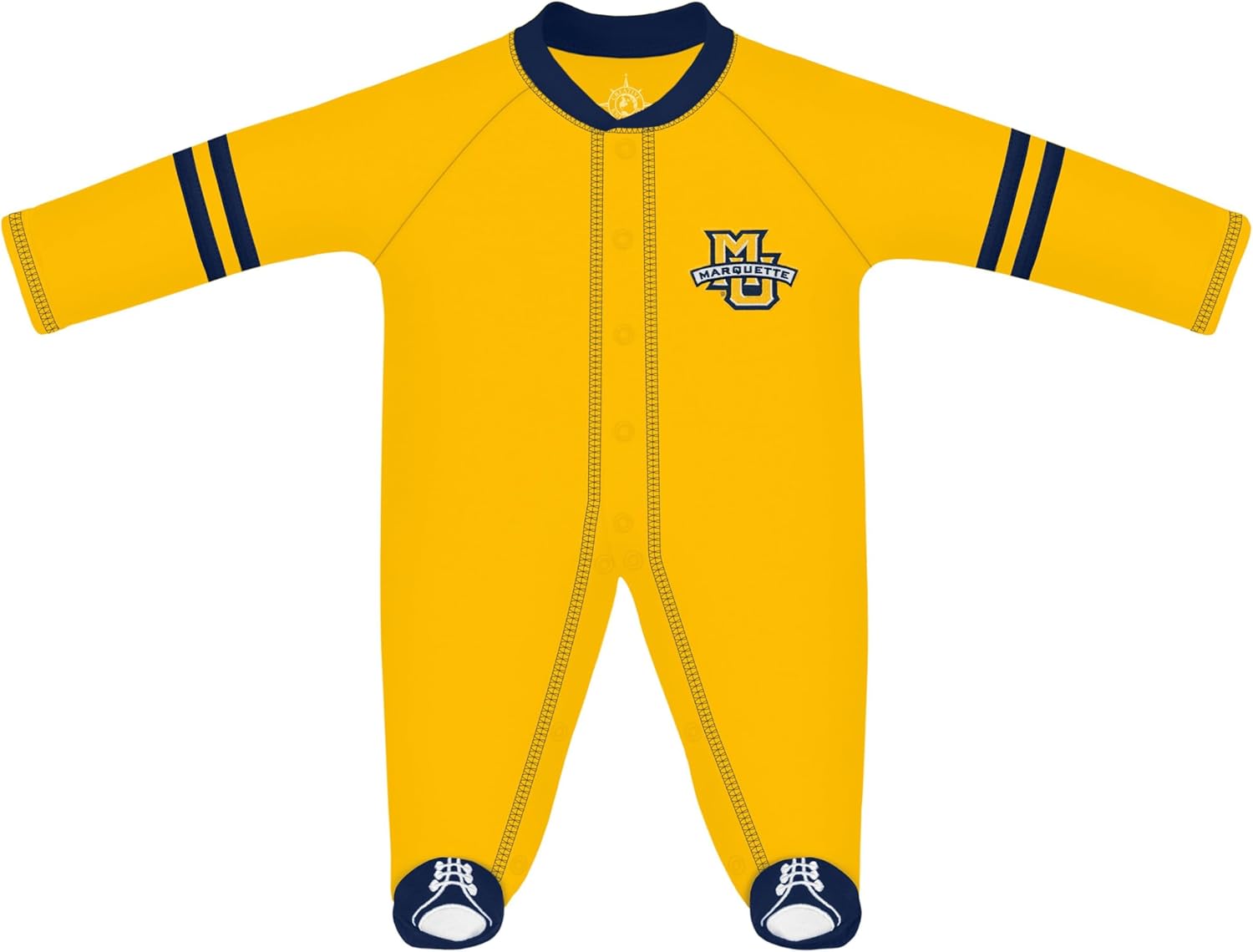 Sport your pint sized Hoosiers fan in this adorable and spirited little sleeper! This detailed outfit features feet that look like cleats, an official Indiana logo, and two stripes on the sleeve. No doubt your sweet little Indiana fan will love it!