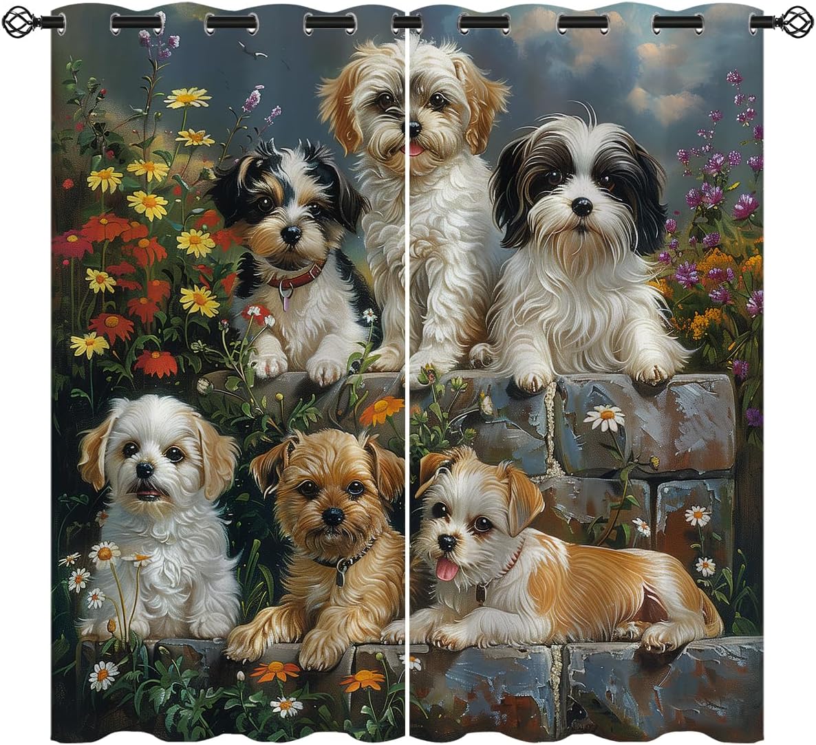 These print curtains are perfect for Living room, bedroom, kids room, kitchen, yard, patio, parlor, sliding door with Dog,Cute Dog Animal Dog Kawaii Kids Pet Art pattern.- Unique design:· Save energy costs by insulating against heat and cold.· Reduce noises from busy streets and high-traffic areas.· Protect furniture from sun damage and fading.· Provides complete privacy when needed· Perfect for any bedroom, office kids room and living room.- Package Included:· Blackout window curtains 2 Pcs set ( two panels).- Material:· Our Blackout Curtain Liners are crafted from a durable soft and thick triple weaved blackout fabric which can block out sunlight and UV rays. The darker color of the fabric, the more light it can block.- Easy Care Instructions:· Machine washable in cold water· Do not bleach.· tumble dry on low· low temperature ironing- Notes:· For your curtains to be more perfect, please choose a size 5-10 Inch larger than the actual window width.· here may be slight differences in colors on different displays. If you have any questions about the product, please feel free to contact us.