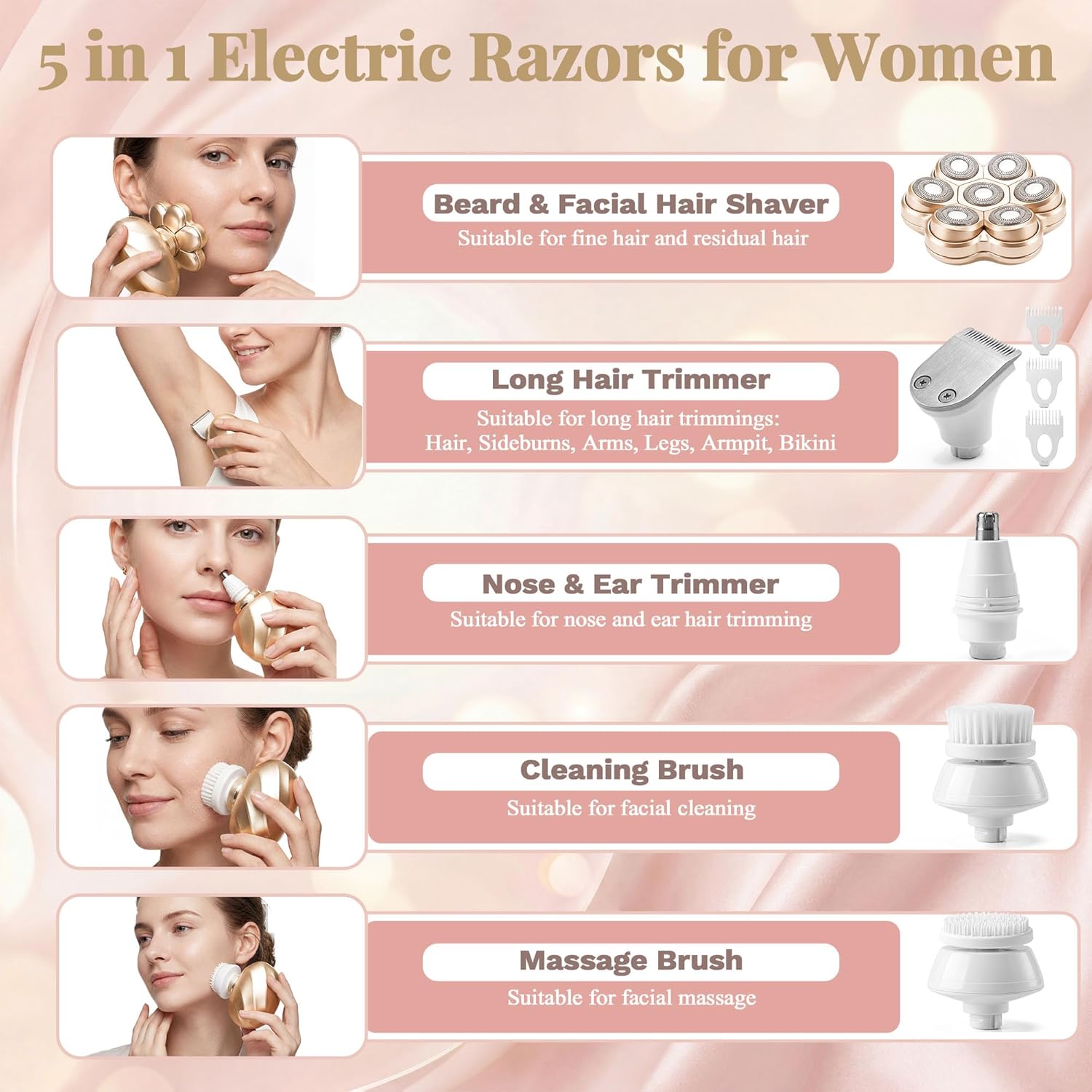| Included Components | 1 x 7D Magnetic Electric Razor, 1 x Hair and Sideburns Trimmer Head with Detachable 3mm/5mm/7mm Guide Combs, 1 x Nose & Ear Trimmer Head, 1 x Facial Cleaning Brush Head, 1 x Facial Massage Brush Head, 1 x USB Cable, 1 x Clean Brush, 1 x User Manual. |