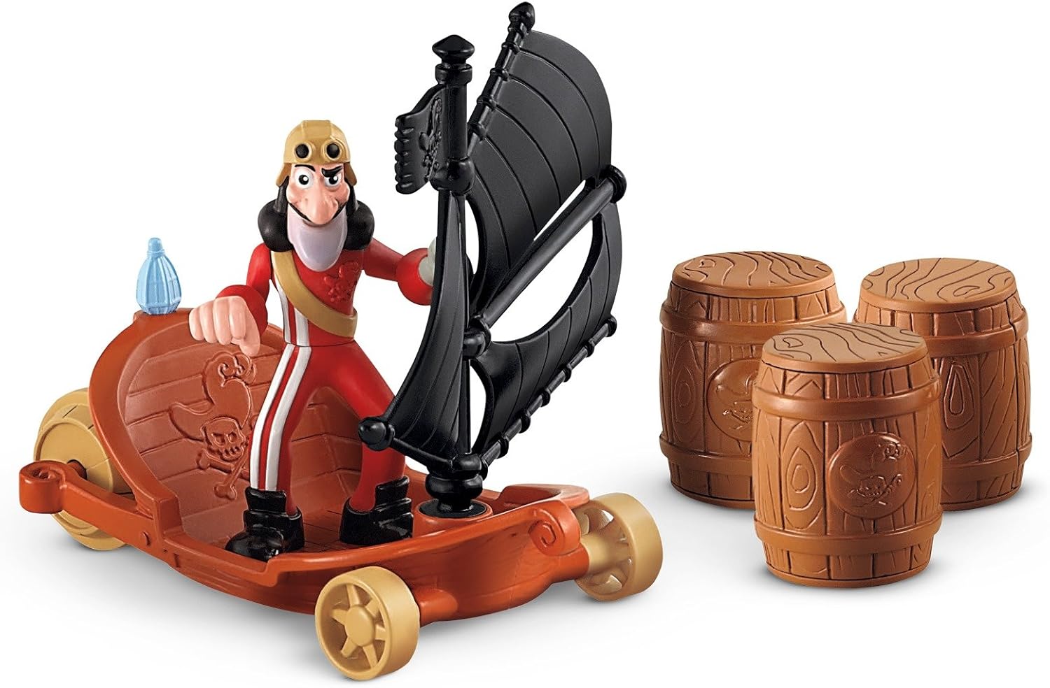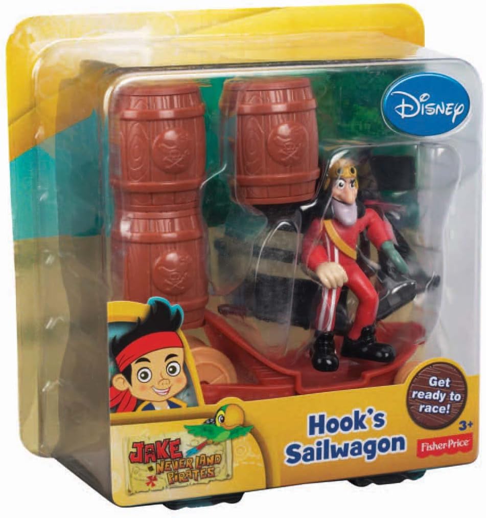 From the Manufacturer Jake and Hook are ready for new adventures. These cool new Sailwagon's, a cross between a sailboat and wagon, have a cool rolling action. You can peg Hook in the Sailwagon and the sail will pivot slightly to the left. Ready to Go. The figures are articulated in shoulders and waist and dressed in their cool racing outfit with helmet. Hook's sailwagon comes with 1 barricade to set up an obstacle course and zip around or through