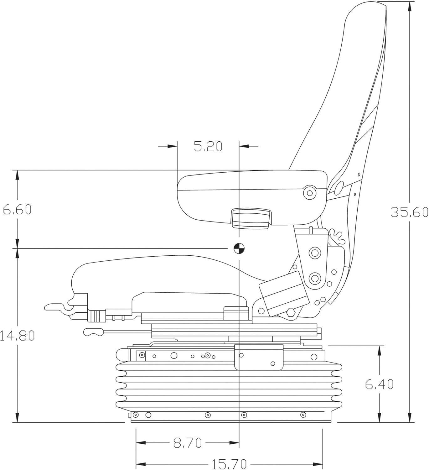 The KM Uni Pro Heavy-Duty Air Suspension Seat has an integrated 24V compressor to ensure that this seat will deliver a comfortable ride in any type of terrain. The CE air suspension seat weight adjustment system can support operators from 100 to 440 lbs. Designed for use with wheel loaders, articulated dump trucks, dozers, and other heavy equipment.