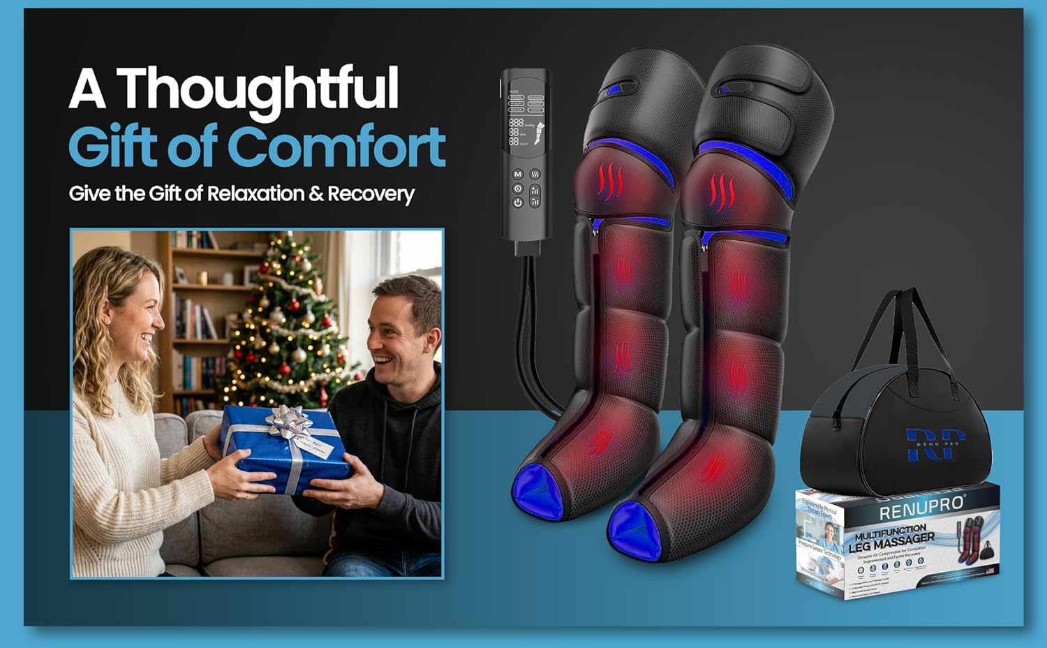 • Heated Leg Massager with Targeted Heat Therapy – Heated sleeves with 3 heat levels (113°F, 122°F, 131°F) soothe soles, calves & knees. Knee area provides warmth without compression to avoid joint pressure.