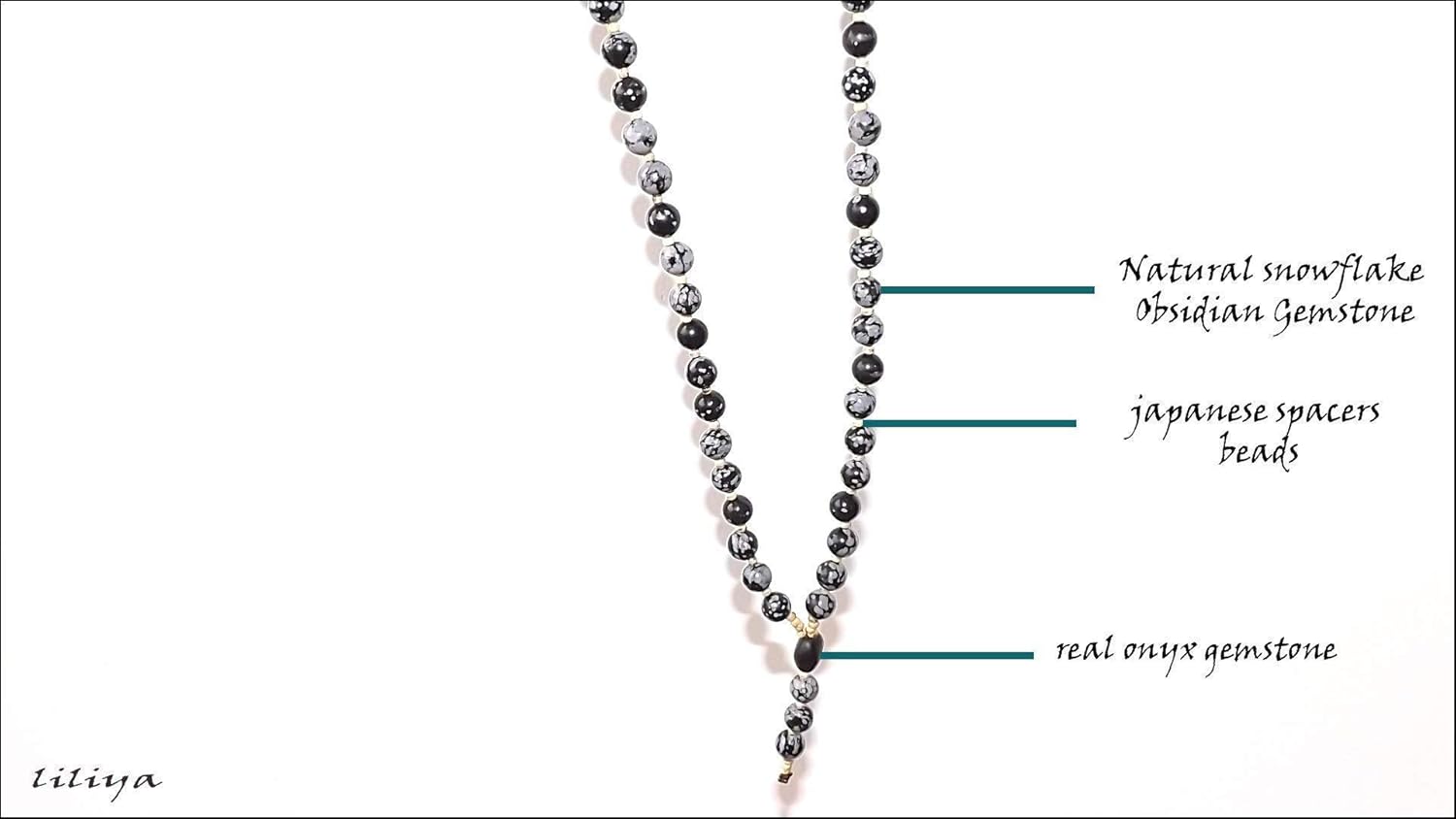 | Material | Natural snowflake Obsidian, japanese spacers beads, onyx |