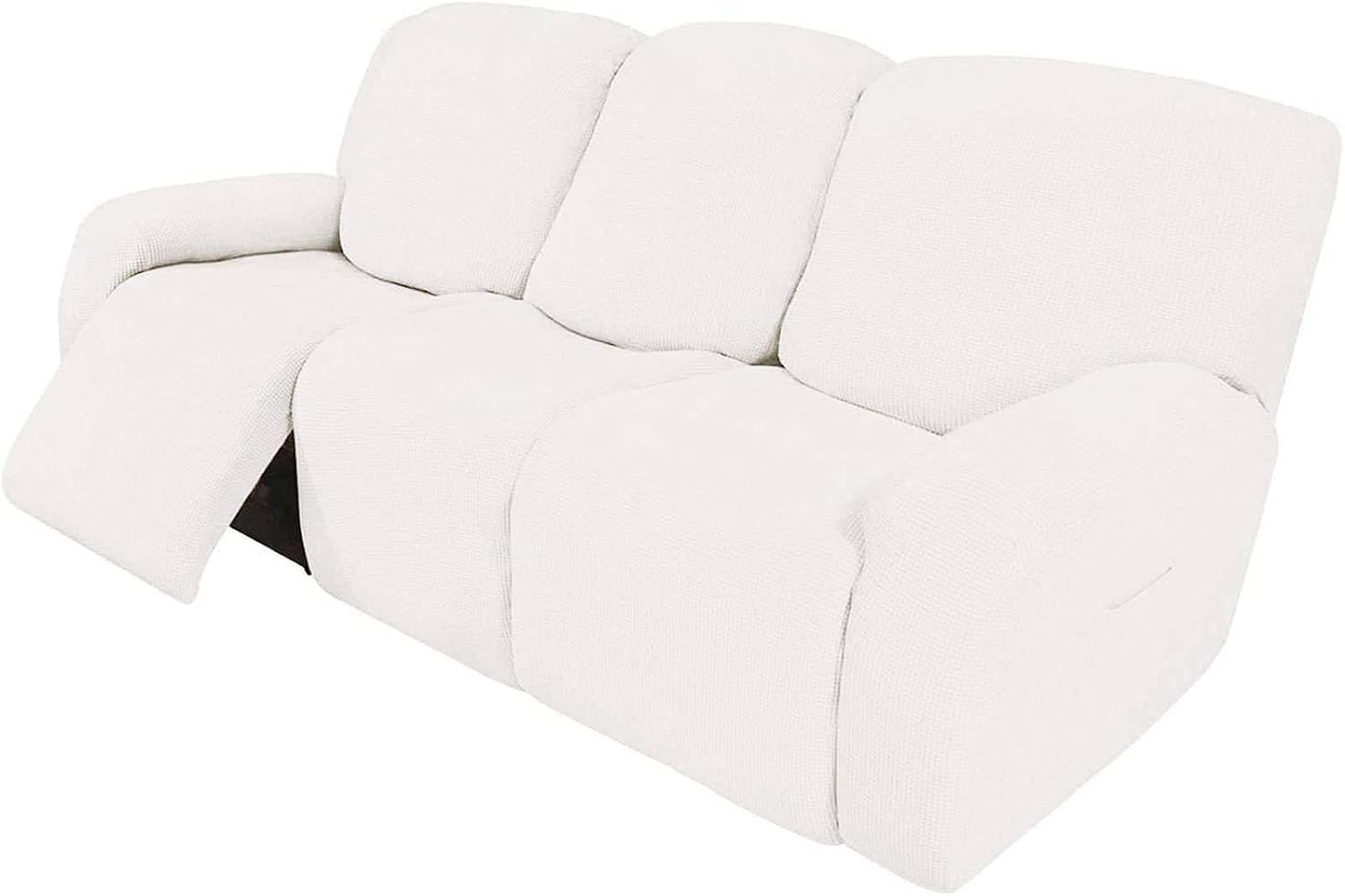 Measure Guide:To make sure getting the perfect fitting, please measure your furniture before ordering.2 seater(6-Pieces): Including 2 arm pieces,2 center back of seat piece and 2 center back of cover piece, fit sofa width between 48-65 inch.3 seater(8-Pieces): Including 2 arm pieces,3 center back of seat piece and 3 center back of cover piece, fit sofa width between 69-91 inch.Benefits:1. Shields and protects furniture from everyday mishaps, including spills, stains, dirt, grime, wear and tear.2. Strapless and elasticized on the bottom so that it stays in place without shifting or moving.3. Super soft and lightweight jacquard stretch material made of 90% Polyester, 10% Spandex.4. Affordable prices that fit any budget, Beautiful colors to complement any decor.5. Stain resistant and machine washable for your convenience.Package Include:1 * Recliner Loveseat Cover Tip:1. Do not shrink or deform easily, do not use bleach.