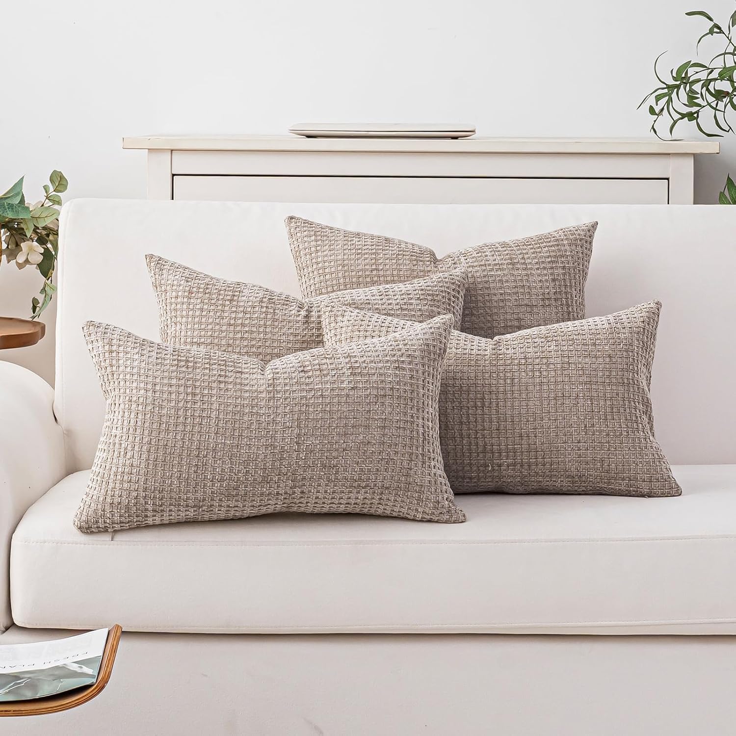Pack of 4 Throw Pillow Covers Boho Cushion Covers Decorative Farmhouse Pillow Covers for Couch Bed Sofa Living Room Home Decor Soft Square Pillowcase