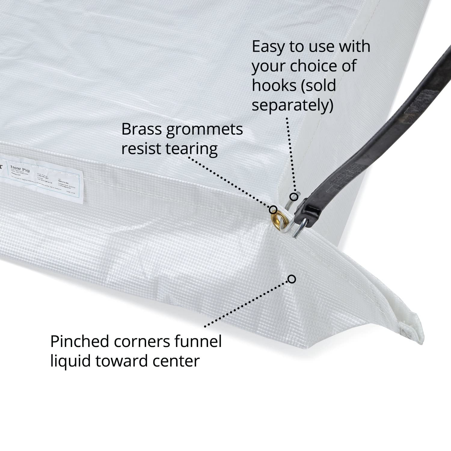 Hang a 5' x 5' Leak Diverter by New Pig to avoid costly damage and losses from overhead leaks. Our simple solution protects your valuables, equipment and inventory while keeping floors and surfaces dry and safe. Brass grommets resist tearing and make installation easy; multiple hanging points add stability and preserve funnel shape. Extra-large drain opening and debris cage prevents clogs from crumbled ceiling tiles, drywall and roofing material. The flow-through rate for this Roof Leak Diverter is 3.33 gallons per minute when used with a 1/2-inch diameter hose. The Roof Leak Diverter by New Pig is not suitable for temperatures over 170 degrees Fahrenheit or 77 degrees Celsius. This Leak Diverter is heavy duty and reusable – the quality you would expect from New Pig, the leaders in absorbing, diverting, filtering and blocking leaks, drips and spills.