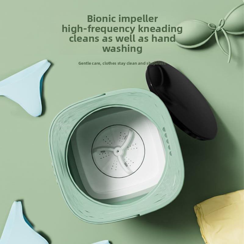 Introducing a revolutionary portable mini washing machine designed for life on the go. Featuring an innovative bionic impeller system with high-frequency kneading action, this compact washer delivers cleaning performance that rivals hand washing. The thoughtfully designed detachable drain basket makes it easy to remove water and dry items quickly after washing. Perfect for delicate items like underwear, baby pajamas, and small garments, this mini washer provides gentle yet effective cleaning while maintaining garment shape and quality. Its travel-friendly design means you can take it anywhere - ideal for apartments, dorm rooms, RVs, or travel. The convenient one-click draining system streamlines the washing process, while the compact size ensures it won't take up much space in your luggage or home. This practical washing solution combines portability with performance, making it an essential companion for those who need a flexible laundry option without compromising on cleaning effectiveness.