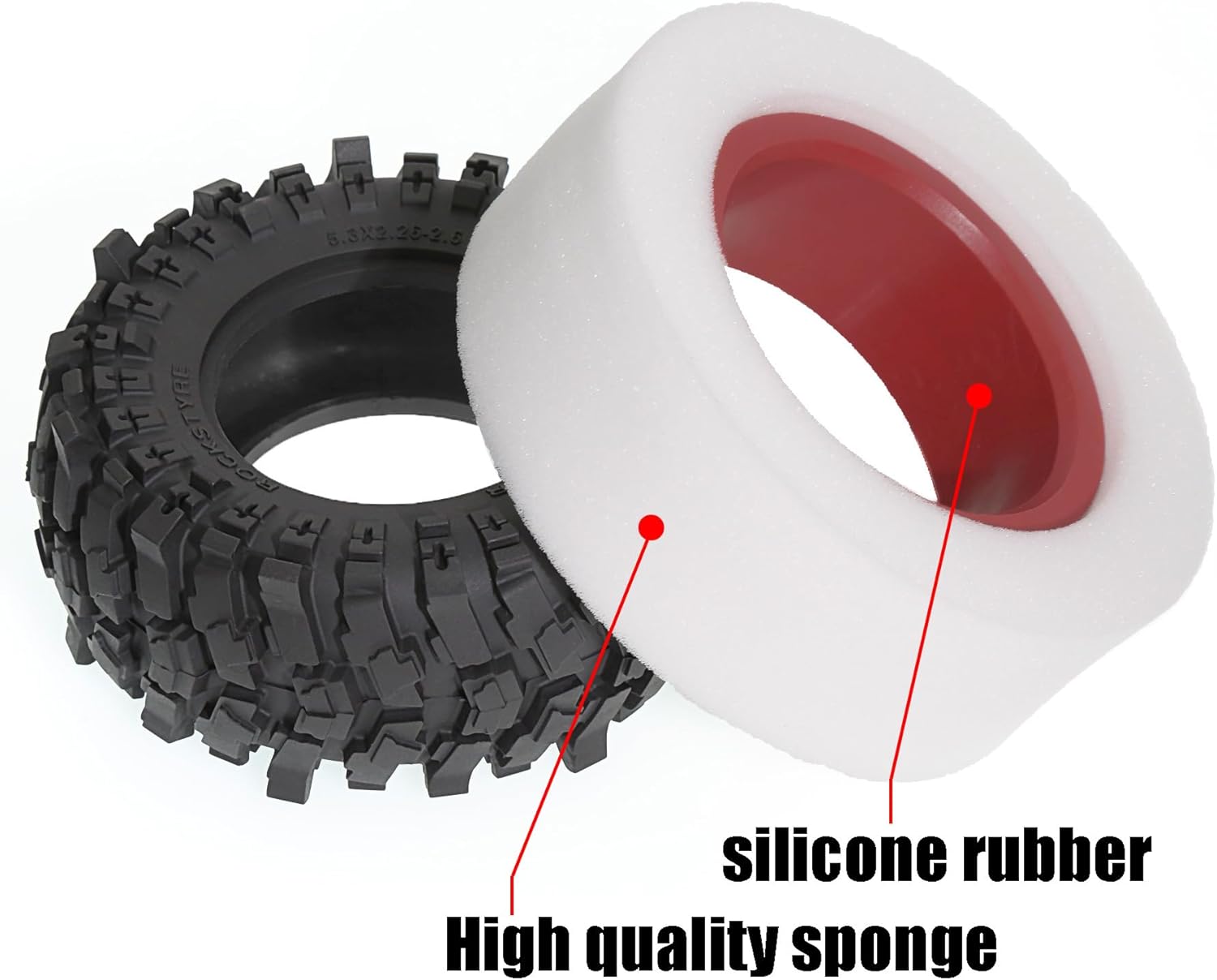 REDSPIDER 2.6'' RC Crawler Tires OD 5.3'' for 1/7 1/8 1/10 RC Crawler Car Axial RBX10 MJX H8H MK07 KM4 (B)