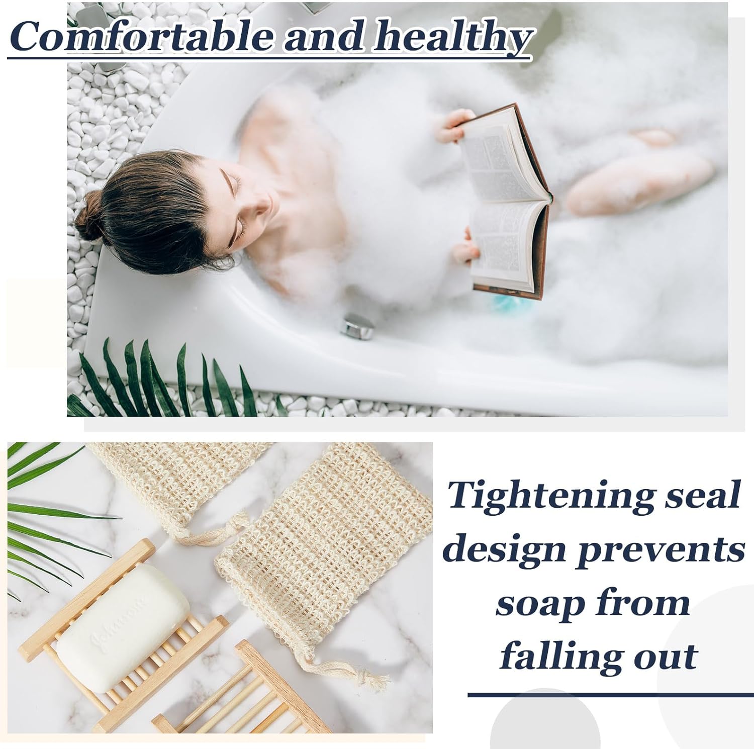 Rtteri 120 Pcs Soap Saver Bags & Bamboo Soap Holder Set Exfoliating Sisal Soaps Washing Bags Self Draining Wooden Bar Soaps Dish for Shower Bath Toilet Kitchen Restaurant
