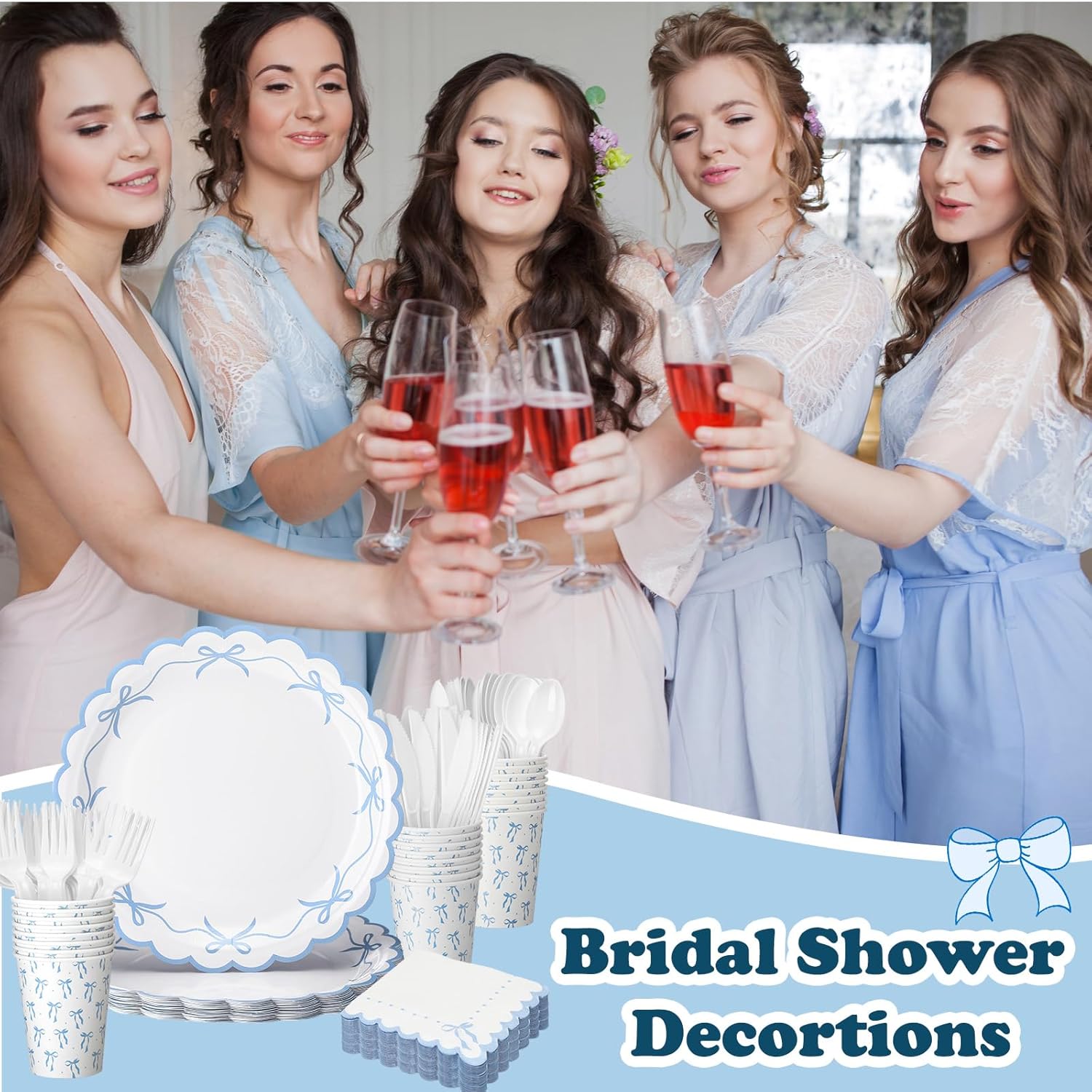 Features: Ideal decoration: Our girl bow tableware set adopts the popular fashion bow design, suitable as decoration for bow themes birthdays or bachelor parties, making your party unforgettable memories. Bow party ready: Get the party started with our pretty bow party supplies. Cheers your way into a fun party and enjoy your party. Specifications: Material: paper, plastic Color: blue, white Size: 9 inch, 7inch, 9 ounce Package includes: 24 x Blue bow plates 24 x Blue bow napkins 24 x Blue bow cups 24 x White forks, 24 x White spoons, 24 x White knives Notes: Manual measurement, please allow slight errors on size. The color may exist a slight difference due to different screen displays.