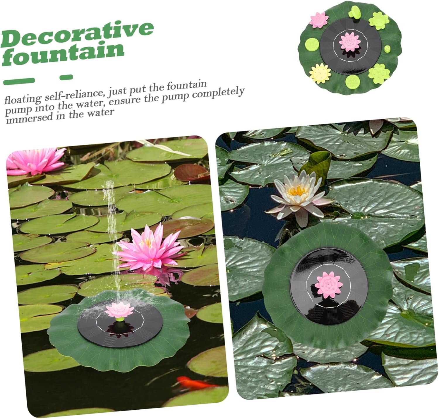 Package List 1 x Lotus-shaped Solar Fountain 9 x Replacement Nozzles Characteristics Flow rate ( ): 120-175 L/H Solar Powered Bath Fountain - Pump specifications: Outdoor Pond Fountain Pump noise:Under normal working conditions, the room temperature (10 cm distance from the tester) <25dB Floating Solar Water Pump Rated power: 1W Garden Bath Fountain - Color: As Shown Pond Floating Fountain - Material: ABS, Monocrystalline Silicon Solar Fountain Water height: 10-60 cm Outdoor Garden Fountain - Size: About 22.00X22.00X4.00cm/8.65X8.65X1.57inch Floating Solar Fountain Rated voltage: 6VDC Lotus-flower Solar Fountain Material: monocrystalline silicon Small Pond Decor Pump life: hours Summer Pond Decor - Application: pond, garden landscape, water pool and more, it's easy to use Lotus-leaf Petal Solar Fountain. Water pump power range: 0.5-0.85W Decorative Fountain Pump head height (Hmax): 72 cm Pool Decor - Solar panel specifications: Working temperature: 0℃ -50℃ - Made from , it would hardly rust or break down any time soon Solar Bath Fountains. - Easy and simple to clean it, helping you create a beautiful pond scenery Solar Water Fountain. - This solar fountain decoration makes your garden look so fun. It is very useful Landscape Decor.Goods DescriptionSolar Fountain Are you looking for an and solar fountain? Are you in search of a sturdy, trustworthy solar fountain that can decorate your pond? If your answer is yes, please look further! Our solar energy fountain must meet your needs.Landscape Decor It is one of for you