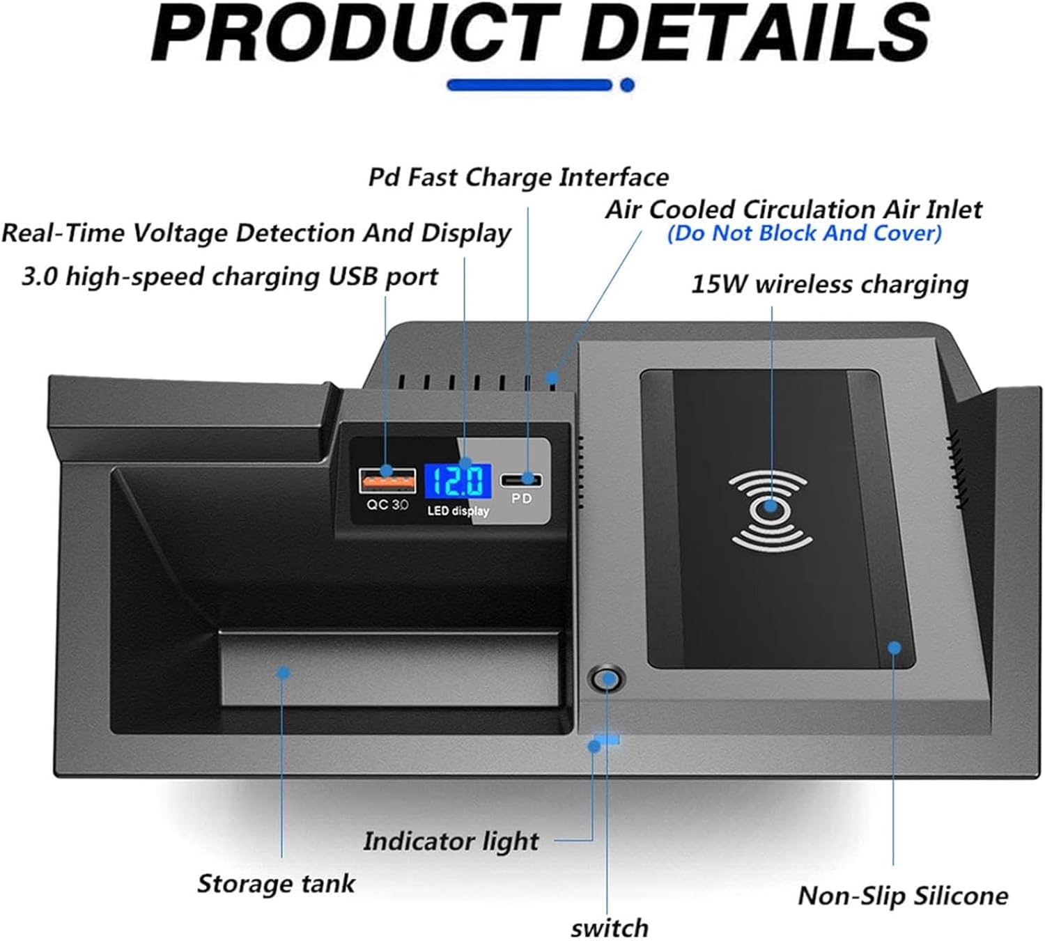 We provide high-quality auto parts for global car modification enthusiasts. We hope can make your car different.Before buying, please check our installation diagram to ensure compatibility with the car mode. Product unique point: - 15W high output coil - Conforms to the certification design for wireless charging, 90% highly efficient conversion. - Over current, over voltage, over temperature, short circuit and other multiple protection functions. - Power management system on vehicle level, efficient fast charging, low temperature control. Compatible with all QI enabled wireless charging devices