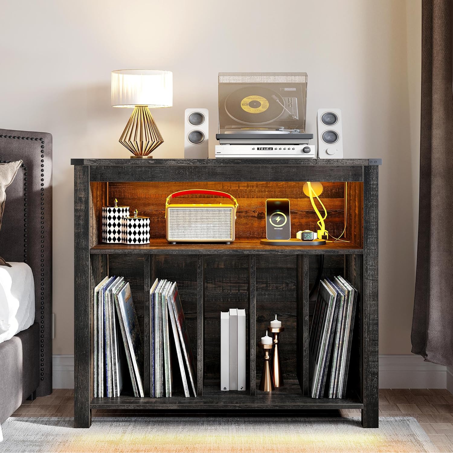 • Large storage space: With 5 cubbies, this turntable stand can hold up to 120 albums, keeping them organized and easily accessible. The spacious top and upper open storage are ideal for storing record player or other media essentials.